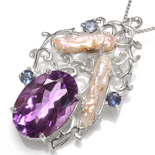 Кулон "Риголетто" Вашему вниманию предлагается авторское украшение из серебра 925 пробы – кулон "Риголетто" с аметистом, сапфирами и фактурным перламутром! Автор: Miguel Angel Senderro. Размеры аметиста 22 х 16 мм, сапфиров 4 мм, жемчуга 21 х 5 мм и 19 х 5 мм. Размеры площадки 49 х 32 мм. Вес изделия 17,4 г. | ![]() |