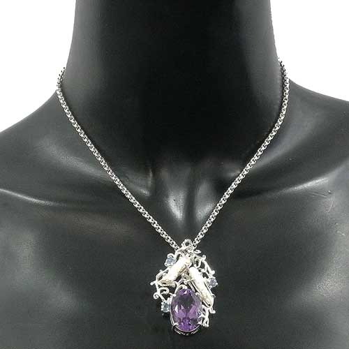 Кулон "Риголетто" Вашему вниманию предлагается авторское украшение из серебра 925 пробы – кулон "Риголетто" с аметистом, сапфирами и фактурным перламутром! Автор: Miguel Angel Senderro. Размеры аметиста 22 х 16 мм, сапфиров 4 мм, жемчуга 21 х 5 мм и 19 х 5 мм. Размеры площадки 49 х 32 мм. Вес изделия 17,4 г. |