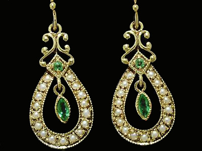 Серьги с изумрудами и жемчугом Вашему вниманию предлагаются роскошныая пара серег из желтого золота 9 карат (375 проба) с 34 жемчужинами диаметром 1,5 мм и изумрудами размерами 1,5 мм и 4 х 2 мм! Дизайнер Kobby Keine. Размеры серег 32 х 12 мм. Вес пары 3,1 г. Изумительная тонкая проработка мельчайших деталей! | ![]() |