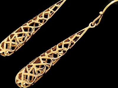 Изящные филигранные серьги Вашему вниманию предлагается пара ажурных серег из розового 9-каратного золота (375 проба) производства австралийской дизайн-мастерской "TH"! Размеры 43 х 7 мм, вес 3,5 г. Серьги в фирменном серебристо-золотистом футляре. Изящная пара! |