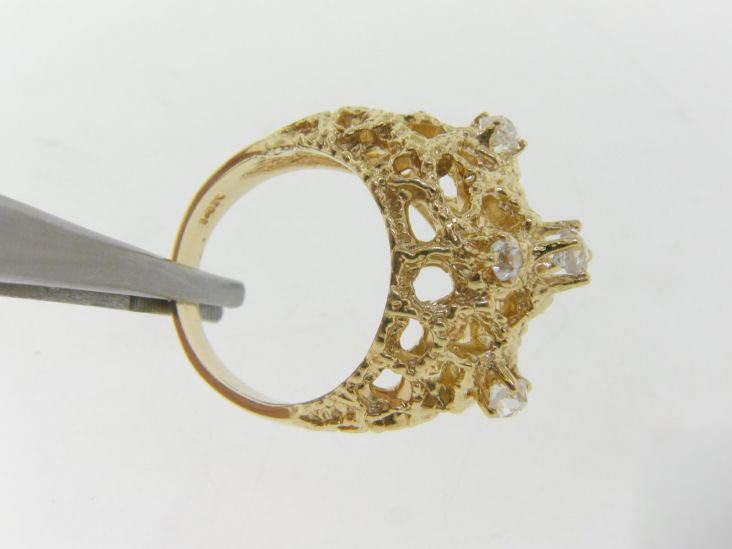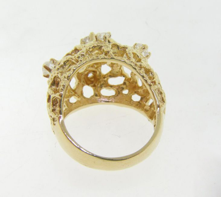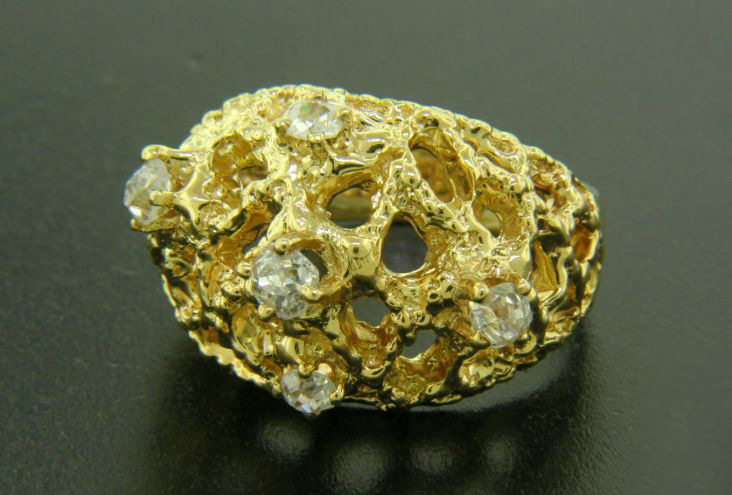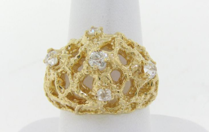 Вашему вниманию предлагается антикварное ажурное кольцо из желтого 14-каратного золота (583 проба) с пятью бриллиантами старой огранки диаметром от 2,9 мм до 3,8 мм и общим весом 0,65 карат! Ширина площадки 15,5 мм, высота 11,5 мм. Вес 11 г. Размер 16,5. Предположительно 20-е годы прошлого столетия. Кольцо сертифицировано. Экспертная оценка $1472.