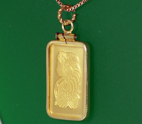 Золотой слиток в золотой оправе Вашему вниманию предлагается золотой слиток весом 2,5г. эмитированный швейцарским банком "PAMP Suisse" и оправа для него из желтого золота 14 карат (583 проба). Чистота металла 999.9 Размеры слитка 21 х 11,5 мм. Слиток крепится в рамке при помощи винтового соединения и может быть легко вынут при желании. В комплекте разъемное кольцо для легкого продевания цепочки. Вес рамки 0,82 г. Размеры с петлей 32 х 14 х 2 мм Вес с рамкой 3,32 г. По Вашему желанию, может быть выслан в собранном виде или по отдельности. Отличный оригинальный подарок, стильное украшение и удачная инвестиция в одном изделии! | ![]() |