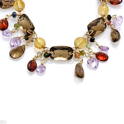 Великолепное колье с самоцветами Вашему вниманию предлагается великолепное украшение – колье из желтого золота 14 карат (583 проба) с превосходным набором самоцветов: аметистами, цитринами, перидотом, гранатами, раухтопазами и турмалинами! Длина колье 508 мм. Вес украшения 38,9 г. Аметист: Цитрин: Гранат: Перидот: Дымчатый Топаз: Турмалины: |