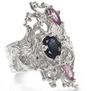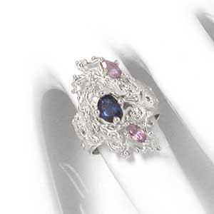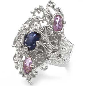 Ювелирный гарнитур из коллекции "Зачарованный Сад" Вашему вниманию предлагаются авторские украшения из коллекции «Зачарованный Сад», объединенные в ювелирный гарнитур! Автор: Tom Gardner. Выполнены из серебра 925 пробы с голубыми сапфирами, аметистами и иолитами! Размеры камней от 6 х 3 мм до 7 х 5 мм. Вес гарнитура 14,4 г. Кольцо: максимальная ширина площадки 30 мм, высота 6 мм. Вес изделия 7,9 г. Размер 17,75.