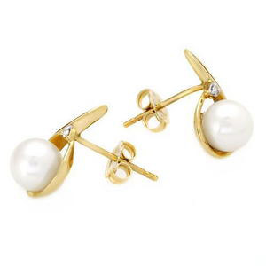 Изящные серьги с жемчугом Вашему вниманию предлагаются изящные серьги из желтого14-каратного золота (585 проба) с двумя нежно-кремовыми жемчужинами диаметром 6 мм и двумя бриллиантовыми акцентами (вес 0,01 карата, цвет H, чистота SI3) диаметром 1 мм! Площадка 14 х 9 мм. Вес пары 2,4 г. |
