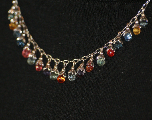 Элегантное колье с разноцветными сапфирами Вашему вниманию предлагается великолепное авторское украшение – элегантное колье из белого золота 14 карат (585 проба) с разноцветными сапфирами-бриолетами! Общая масса камней 9,2 карата, чистота 1 - 2. Размеры камней 4,5 х 3 мм. Длина по цепочке 460 мм, длина инкрустации 100 мм. Вес украшения 6,9 г. |