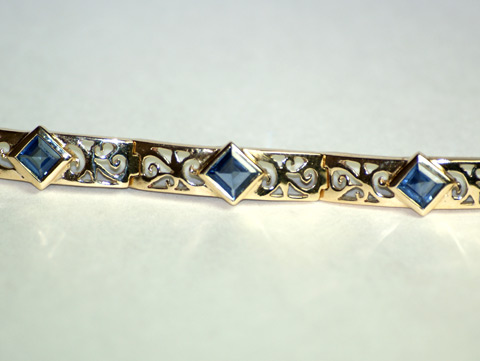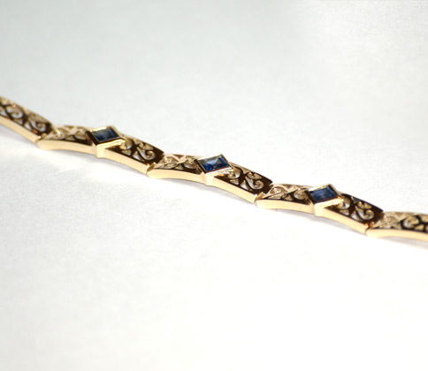 Ажурный браслет с яркими сапфирами Вашему вниманию предлагается браслет ручной работы, из 9-каратного золота (375 проба) с тремя яркими синими сапфирами! Длина браслета 180 мм, ширина 6 мм. Вес изделия 8,14 г. На изделие имеется российский сертификат. Экспертная оценка $357. Сапфир: |