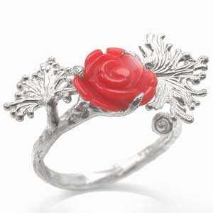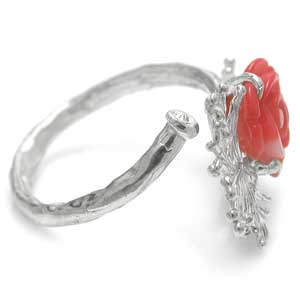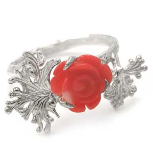 Кольцо. Размеры коралла 12 х 11 мм. Ширина площадки 18 мм, высота 7 мм. Вес 5,8 г. Размер регулируется.