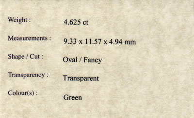 Редкость! Крупный демантоид 4,62 карат Вашему вниманию предлагается крупный демантоид (камень такого размера — редкость)! Ниже приводятся ювелирные характеристики. Камень имеет два сертификата: Emil Gem Laboratory (Japan) и российский. Demantoid Garnet (Natural) |