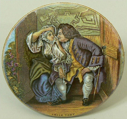 На крышку методом деколирования нанесено полноцветное изображение персонажа книги Лоренса Стерна «Жизнь и мнения Тристрама Шенди, джентльмена», дядюшки Тоби (Uncle Toby).