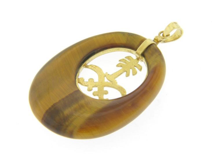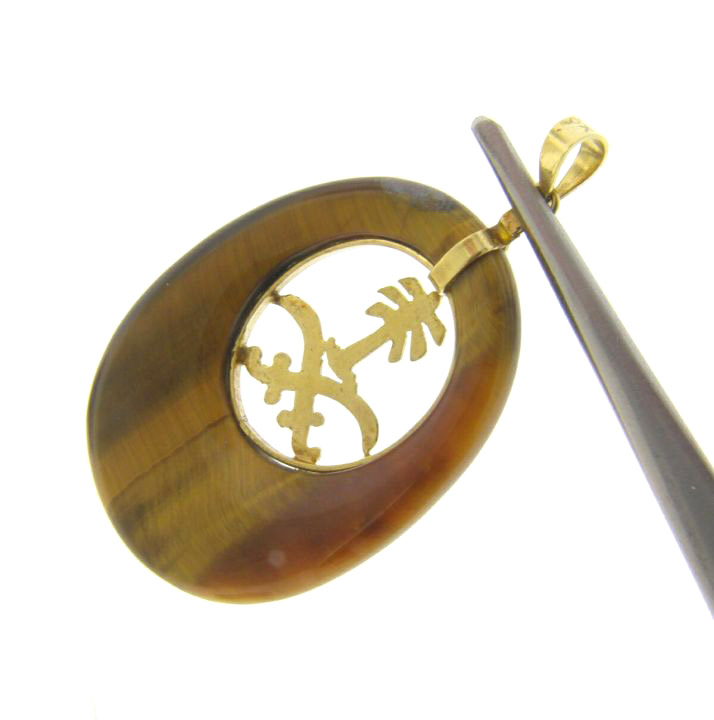 Подвеска «Царство Берберов» с тигровым глазом Вашему вниманию предлагается авторское украшение — подвеска «Царство Берберов» из цельного фрагмента тигрового глаза с инкрустацией из желтого золота 18 карат (750 проба)! Размеры камня 40 х 30 мм, подвески с петлей 51 х 30 мм. Вес украшения 9,8 г. |