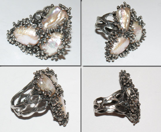 Ювелирный гарнитур «Наваждение» Вашему вниманию предлагается авторское украшение – ювелирный гарнитур «Наваждение»! Выполнен из серебра 925 пробы с великолепным жемчугом цвета слоновой кости с пурпурным отливом! Гарнитур состоит из браслета, подвески и кольца. Автор: Karlos San-Faliano. Кольцо: Размеры площадки 26х33 мм, высота площадки Подвеска: Размеры 54x28 мм. Вес 20 г. Браслет: Длина 195 мм, ширина до 28мм. Вес 38 г. |