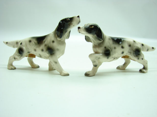 Набор для приправ. Японский фарфор Вашему вниманию предлагается фарфоровый набор для приправ из двух предметов, выполненный в виде фигурок охотничьих собак, застывших в стойке! Предположительно 70-е годы XX века. В нижней части – отверстия для засыпания приправ закрытые пробками. Одна фигура имеет 2 отверстия для высыпания, другая – 3. К каждой фигуре прикреплен прямоугольный стикер «JAPAN». Размеры 136 х 69 х 26 мм и 135 х 82 х 26 мм. Вес 52 и 53 г.
