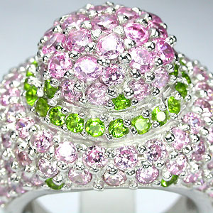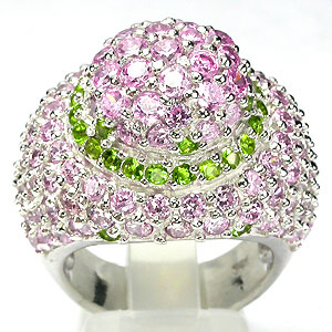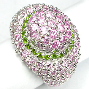Яркое кольцо с кристаллами Swarovski Вашему вниманию предлагается авторское украшение – объемное кольцо из серебра 925 пробы россыпью нежно-розовых и золотисто-зеленых кристаллов Swarovski! Размеры площадки 25 х Яркое, эффектное украшение! |