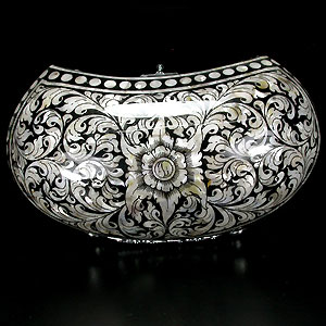 Сумочка для мелочей. Художественная инкрустация перламутром Вашему вниманию предлагается авторская работа – сумочка для мелких вещей, инкрустированная натуральным радужным перламутром. Можно хранить украшения, косметику, пуговицы или золотые червонцы царской чеканки. Снизу прикреплены 4 ножки, т.е. сумочку можно ставить. Сверху – стальной замок-застежка. Изнутри оформлена темно-красной бархатной тканью, имеет 2 внутренних боковых кармашка. Перламутр защищен лаковым покрытием. Размеры изделия: 140 х 76 х Отличный оригинальный подарок! | ![]() |