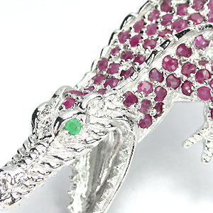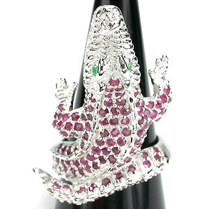 Вашему вниманию предлагается авторское украшение – кольцо-скульптура «Крокодил», выполненная из серебра 925 пробы с натуральными рубинами и изумрудами!