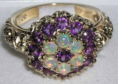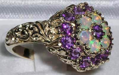 Золотое кольцо с опалами и аметистами Вашему вниманию предлагается авторское кольцо из желтого золота 9 карат (375 проба) с высочайшего качества австралийскими белыми опалами и ярко-сиреневыми аметистами! В кольце 6 опалов категории Brightness A+++ и 13 чистейших аметистов диаметром 3 мм. Ширина площадки 15 мм, высота 6 мм. Вес изделия 6,5 г Кольцо на размер 18. Сделано в Англии. |