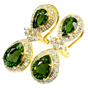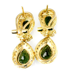 Золотые серьги с турмалинами и бриллиантами Вашему вниманию предлагаются роскошные серьги из желтого золота 14 карат (585 проба) с чистейшими турмалинами и бриллиантами! Дизайнер Kobby Keine. Размеры серег 29 х 10 мм. Вес пары 7,84 г. На изделие есть заключение ювелирной экспертизы. Экспертная оценка $793.