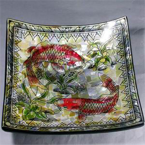 Декоративная тарелка с инкрустацией перламутром Вашему вниманию предлагается авторская работа – декоративная тарелка, инкрустированная натуральным радужным цветным перламутром! Тарелка выполнена из дерева, покрытого черным лаком. Перламутр защищен бесцветным лаковым покрытием. 100% ручная работа! Размеры изделия: 178 х 173 х | ![]() |