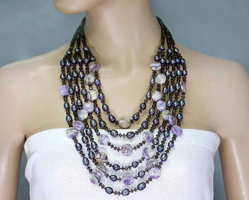 Колье в 6 нитей с агатом и жемчугом Вашему вниманию предлагается великолепное авторское украшение – колье в 6 нитей с эффектным агатом, жемчугом и дымчатым кварцем! Колье состоит из трех раздвоенных нитей длиной от 540 до 800 мм. Диаметр агатовых вставок 16 мм, размеры жемчужин примерно 11 х 8 мм. Застежка выполнена из серебра 925 пробы. Вес украшения 207,9 г.