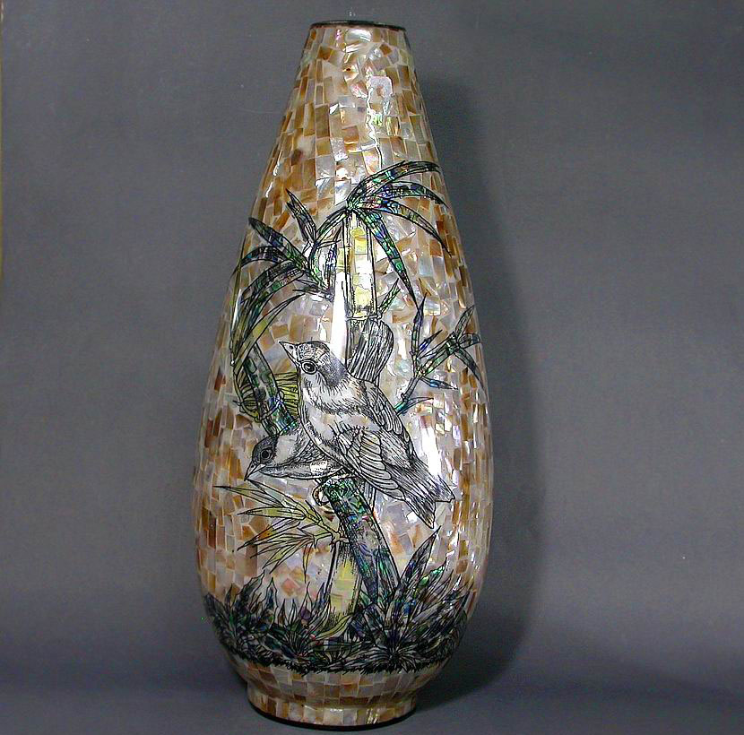 Перламутровая ваза! Ручная работа Вашему вниманию предлагается авторская работа – декоративная ваза, инкрустированная натуральным радужным цветным перламутром! Ваза выполнена из дерева, покрытого черным лаком. Перламутр защищен бесцветным лаковым покрытием. 100% ручная работа!