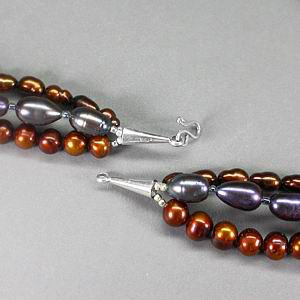 Колье состоит из 3 нитей из разных сортов жемчуга и «цветков» из перламутра, тигрового глаза, цитринов и жемчужин! Размеры «цветков» от 35 до 65 мм. Общая длина 500 мм. Застежка выполнена из серебра 925 пробы. Вес украшения 220 г. |