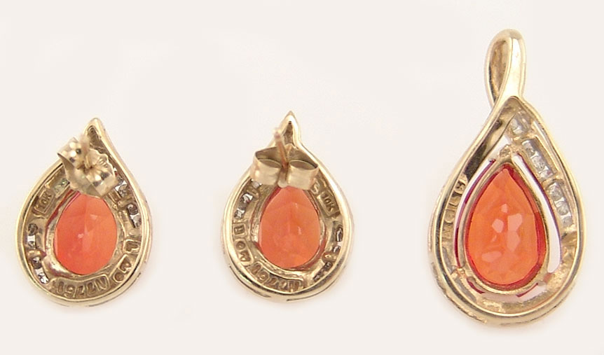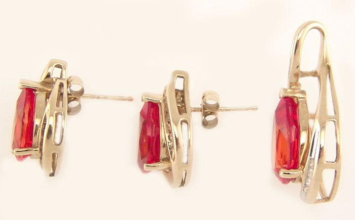 Комплект с сапфирами и бриллиантами Вашему вниманию предлагаются комплект: серьги + подвеска из золота 14 карат (585 проба) с лабораторными сапфирами великолепного золотисто-оранжевого цвета (падпараджа) и бриллиантами! Вес комплекта 6,77 г. Изделия сертифицированы. Экспертная оценка $324