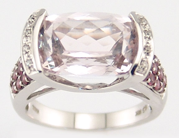 Превосходное кольцо с кунцитом, турмалинами и бриллиантами Вашему вниманию предлагается кольцо из белого золота 14 карат (585 проба) с чистейшим нежно-розовым кунцитом, пурпурно-красными турмалинами и бриллиантами! Размеры кунцита 15 х 10 мм. Высота площадки 10 мм. Вес изделия 10,2г. Размер 19,5. Кольцо сертифицировано. Экспертная оценка $527 | ![]() |