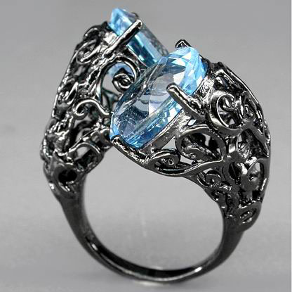 Комплект "Арабская Ночь" Вашему вниманию предлагается авторские украшения – комплект «Арабская Ночь» из черненого серебра с голубыми топазами! Дизайн: Angela Fox. Комплект состоит из оригинального кольца и серег. Застежка серег украшена кубиком циркония.