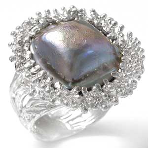 Кольцо "Наяда" Вашему вниманию предлагается авторское украшение – кольцо «Наяда»! Автор: Tyna Issaksone. Выполнено из серебра 925 пробы с крупной радужной жемчужиной Mabe со стальным отливом! Ширина площадки 25 мм, высота 9 мм. Вес изделия 13 г. Размер 17,25 . | ![]() |