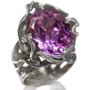 Кольцо из коллекции "Тайны Ночи" Вашему вниманию предлагается авторское украшение – кольцо из коллекции «Тайны Ночи»! Автор: Tyna Issaksone. Выполнено из черненого серебра 925 пробы с инкрустацией чистейшим ярким аметистом! Размеры камня 17 х 13 мм. Ширина площадки 25 мм, высота 9 мм. Вес 9,6 г. Размер 17,5 . | ![]() |