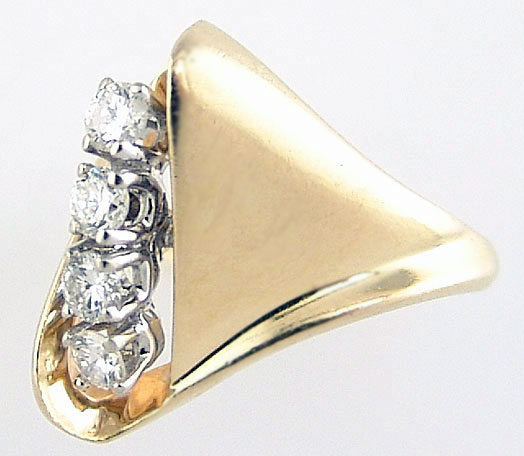 Кольцо с четырьмя бриллиантами Вашему вниманию предлагается антикварное кольцо из золота 14 карат (585 проба) с бриллиантами! Четыре бриллианта огранки КР-57 общим весом 0.42 карат с характеристиками 5/5. Ширина площадки 18 мм, высота 7 мм. Вес изделия 4,46 г. Размер 17,5. Кольцо сертифицировано. Экспертная оценка $829. |