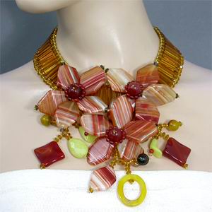 Колье с "цветками" из карнелиана и агатов Вашему вниманию предлагается великолепное авторское украшение – колье с «цветками» из карнелиана и агатов! Колье состоит из 3 нитей с «цветками» из эффектного агата и карнелиана диаметром приблизительно 75 мм! Общая длина 450 мм. Застежка выполнена из серебра 925 пробы. Вес украшения 315 г. | ![]() |