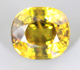 Выберите параметры изделия Заказать Кольцо с малым прямоугольным камнем, используя Высокая дисперсия! Крупный желтый сфен 9,84 карата в качестве центральной ювелирной вставки.