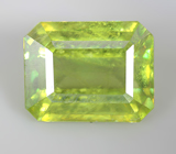 Выберите параметры изделия Заказать Кольцо с малым прямоугольным камнем, используя Желтовато-зеленый сфен 2,86 карата в качестве центральной ювелирной вставки.