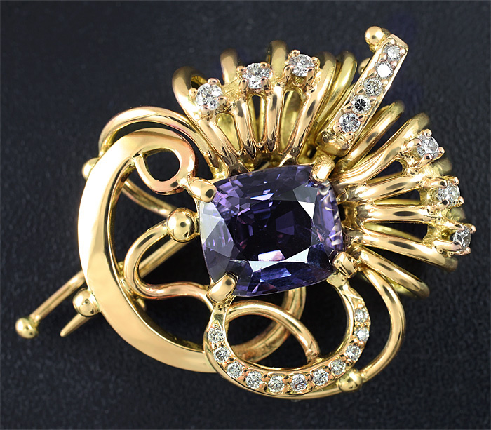 Брошь/кулон с розовато-пурпурной шпинелью и бриллиантами!