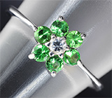 | Кольцо c цаворитами гранатами и лейкосапфиром!