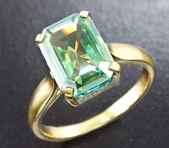 Лот № m-1790 Кольцо c муассанитом! Материал: Золото Вес изделия: 4,2 грамм Размер: 17,5 (Не подходит размер?) Вашему вниманию предлагается кольцо из желтого золота 585 пробы c муассанитом! Площадка 11 х 8 мм, высота 7 мм. Вес изделия 4,2 г. Размер 17,5. Ниже приводятся ювелирные характеристики вставки.