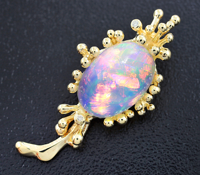 | Кулон с кристаллическим эфиопским опалом и бриллиантами!