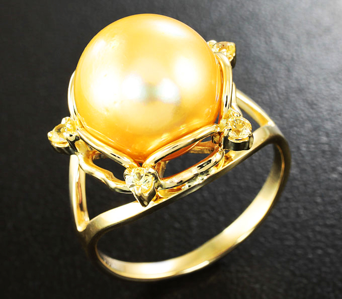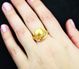 | Золотое кольцо с золотистой морской жемчужиной 11,24 карат и желтыми сапфирами!