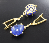 Лот № m-3022 Серьги с танзанитами и бриллиантами! Материал: Золото Вес изделия: 10,74 грамм Размер: 46 х 14 мм Вашему вниманию предлагаются серьги из желтого золота 585 пробы с танзанитами 25,47 карата и бриллиантами! Размеры танзанитов 15 х 12 мм, диаметр бриллиантов 1,1 мм и 1,5 мм. Размеры серег с петлей 46 х 14 мм. Вес пары 10,74 г. Отзывы покупателей