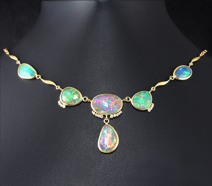 | Колье с кристаллическими эфиопскими опалами авторской огранки 14,16 карат и бриллиантами!