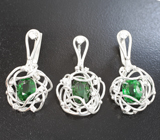 | Комплект с крупными насыщенными цаворитами 6,36 карата и бесцветными цирконами!