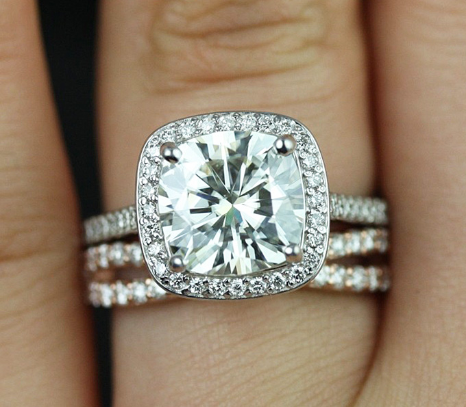 Почему муассанит, а не кубик циркония? Фианит (кубик циркония) — наиболее популярный и дешевый симулянт бриллианта, имеющий при этом ряд серьезных недостатков. Фианит имеет твердость 7,5–8. Это означает, что фианит легко может поцарапаться. Фианит имеет дисперсию и показатель преломления значительно ниже бриллианта, и тем более муассанита, из-за этого ограненный фианит пропускает через себя большую часть света насквозь. Любой человек может с легкостью отличить фианит от бриллианта. У фианита углы и ребра граней вседа будут слегка закругленными, а во время ношения на них легко появляются мелкие царапины и сколы. Муассанит имеет физические характеристики значительно ближе к бриллианту, поэтому он лучше сохраняет первозданный облик. Также стоит отметить, что хоть фианит и является искусственно выращенным камнем, но по своему химическому составу не является синтетическим или искусственным бриллиантом. Купить искусственный бриллиант хорошего ювелирного качества довольно тяжело и в данный момент он будет стоить дороже природного алмаза. Ювелирные камни - Муассаниты в продаже