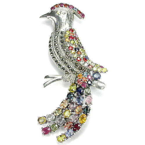 ![]() | Брошь в форме волшебной птицы с сапфирами, рубинами и маркаситами!
