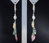 Серебряные серьги из коллекции «Drops» с разноцветными турмалинами