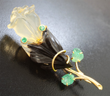 Крупная золотая брошь с резным полихромным кварцем 30,2 карата и уральскими изумрудами