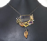 Серебряное колье с резными флюоритом, цитринами...