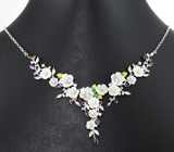 Изумительное серебряное колье с резным перламутром, самоцветами и цветной эмалью