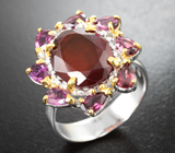 Серебряное кольцо с карнелианом, родолитом и иолитами